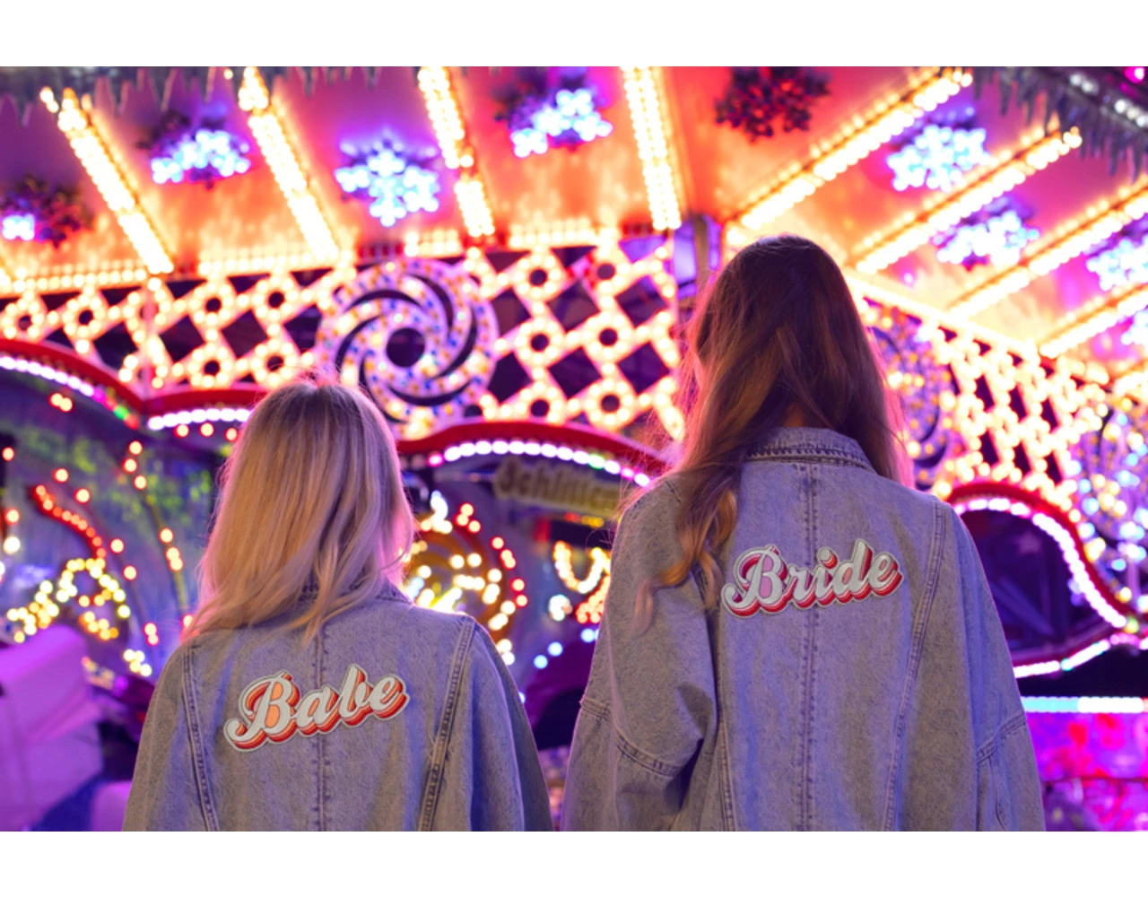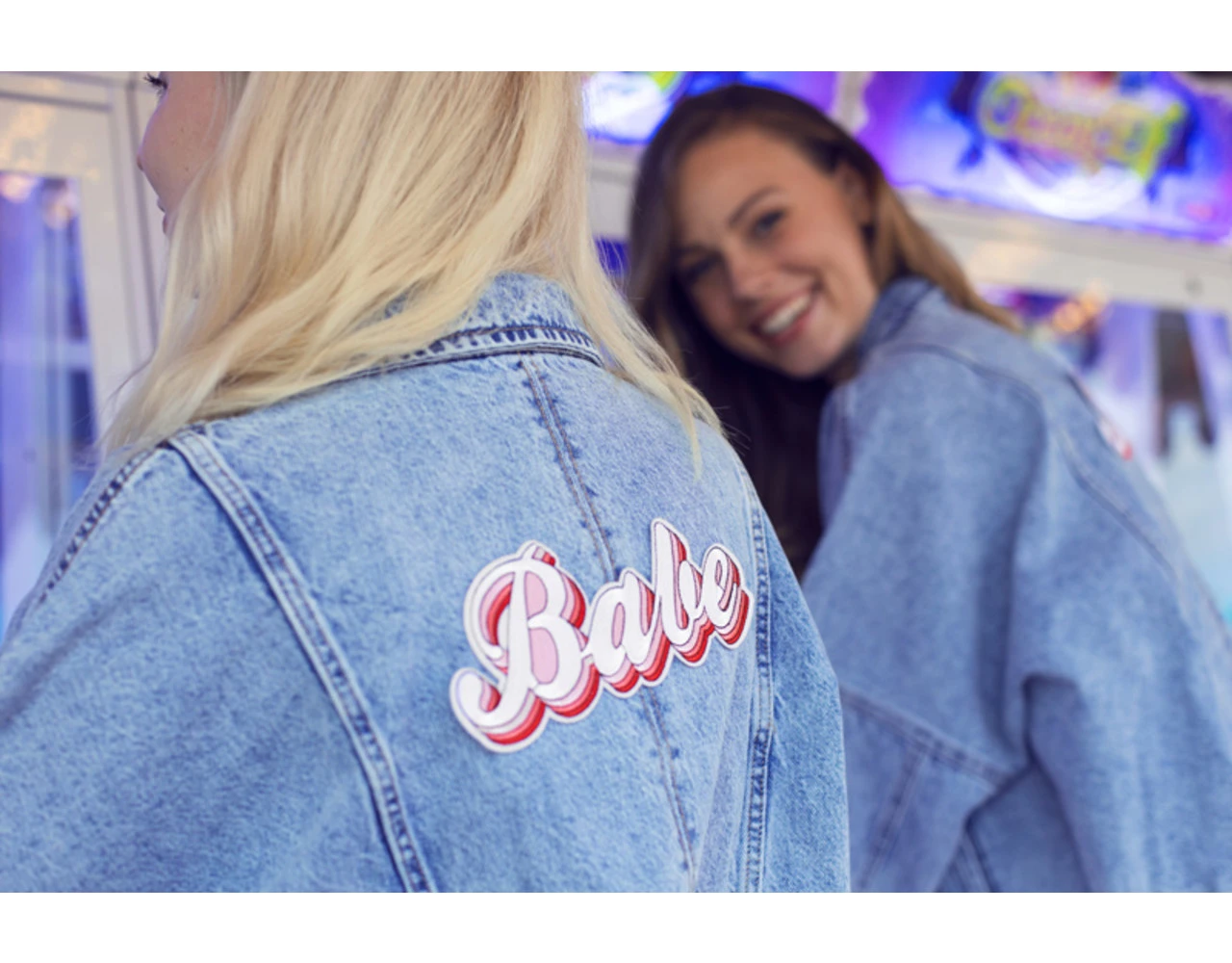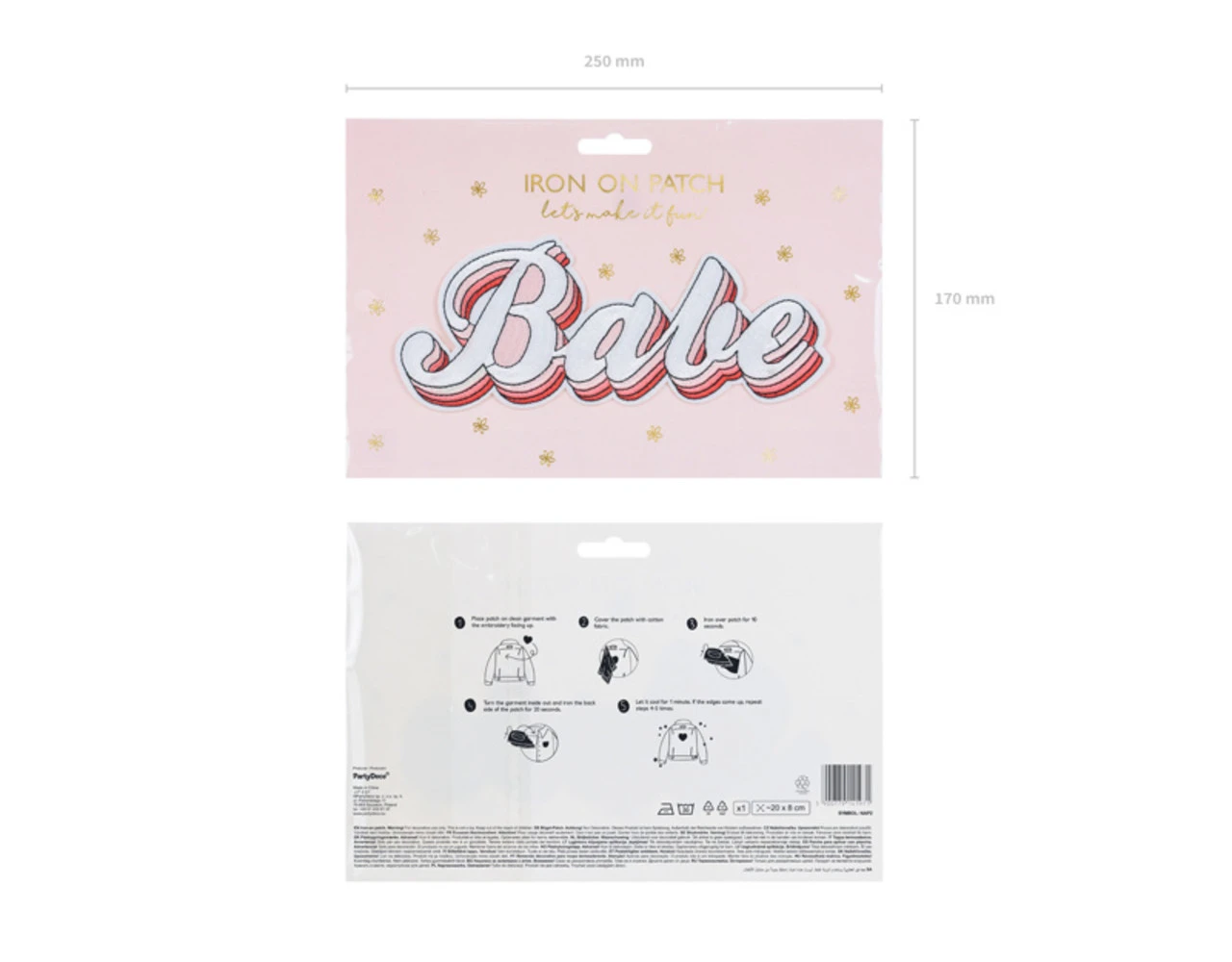 Strijkbare patch Babe, mix van kleuren, afmeting ca. 20 x 8 cm.