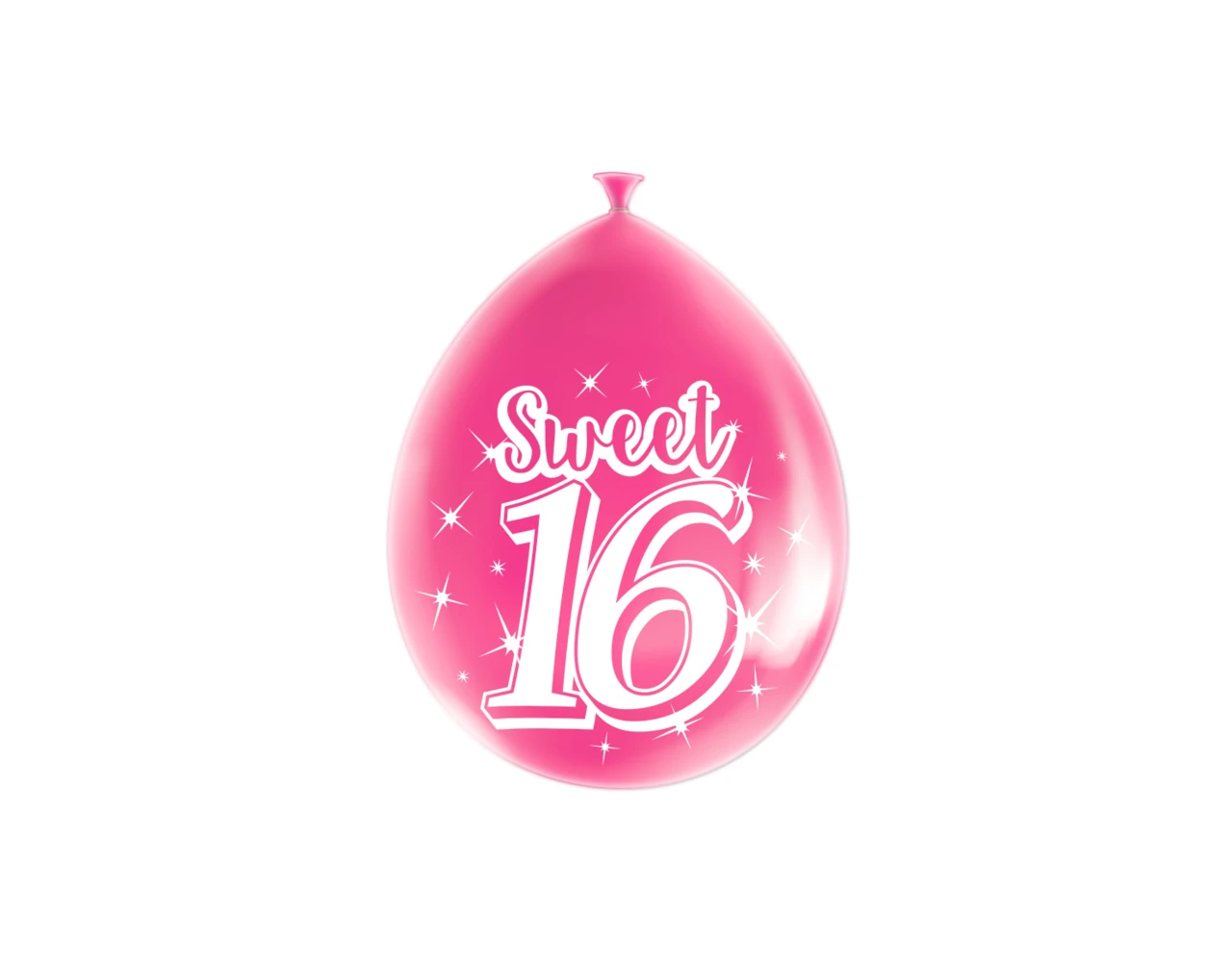 Verpakkingsinhoud: Sweet 16 Ballonnen 16 Jaar Roze 30cm 8st