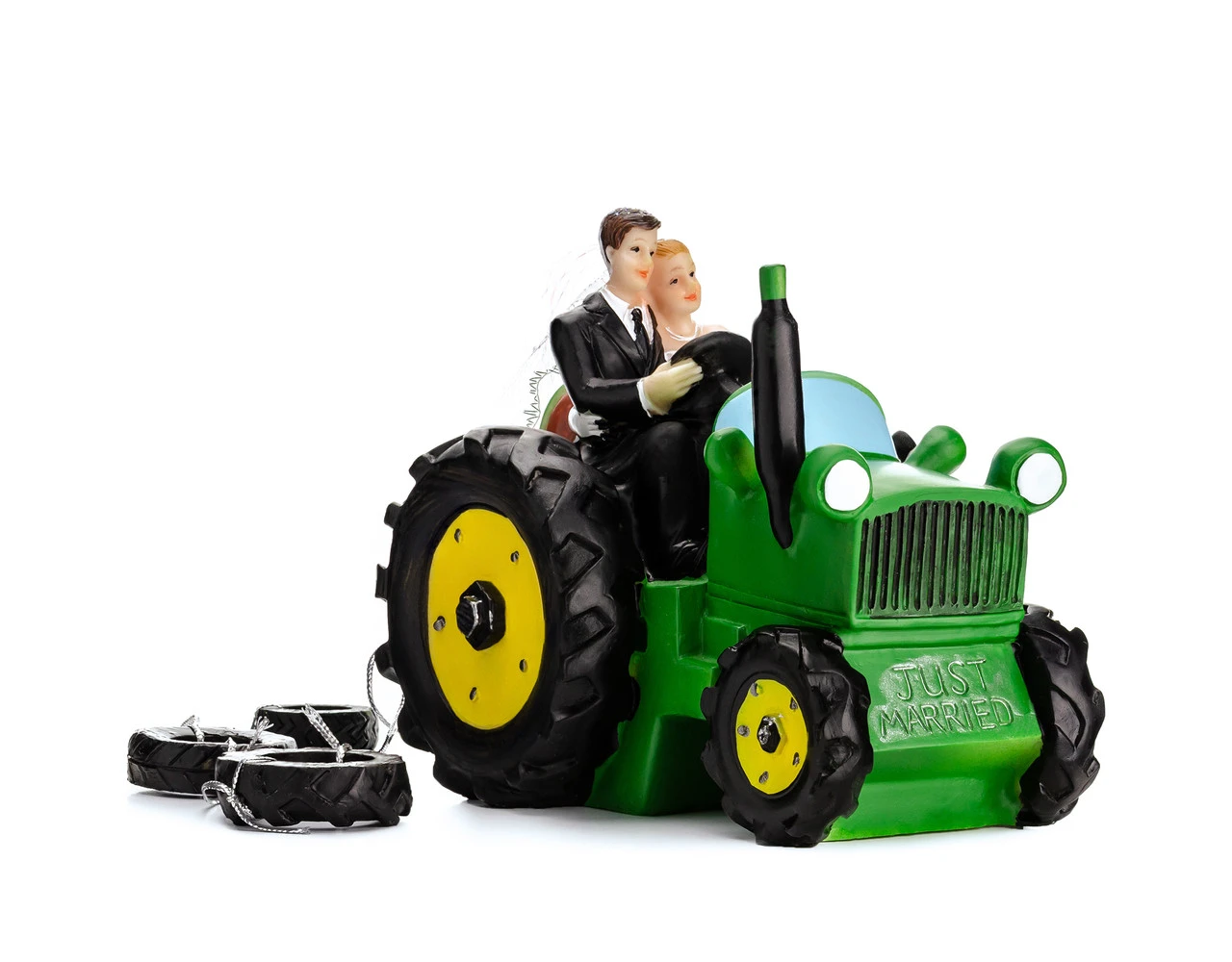 Verpakkingsinhoud: Taarttopper Bruiloft Bruidspaar Tractor 11cm