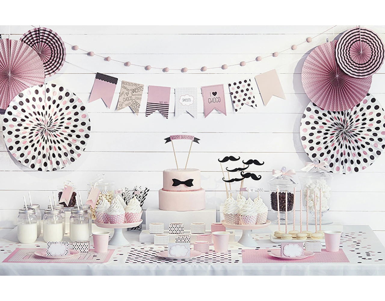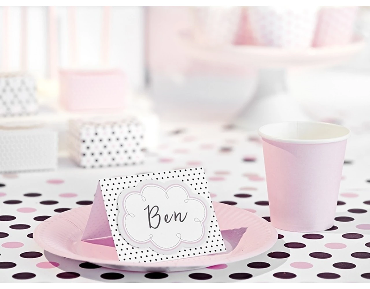 Verpakkingsinhoud: Tafelkaartjes Roze Zwart 8,4cm 6st