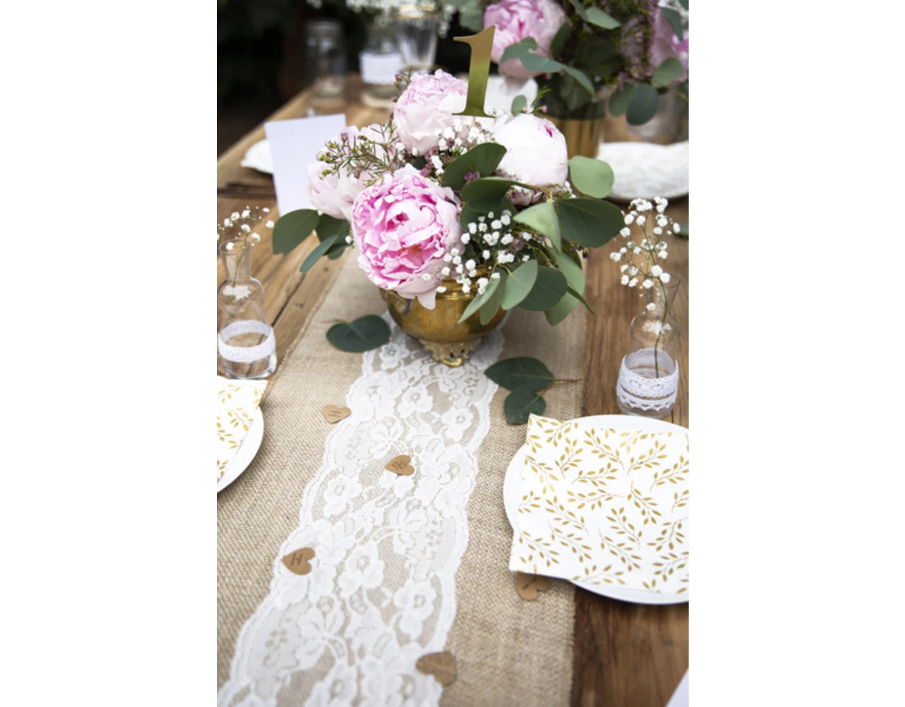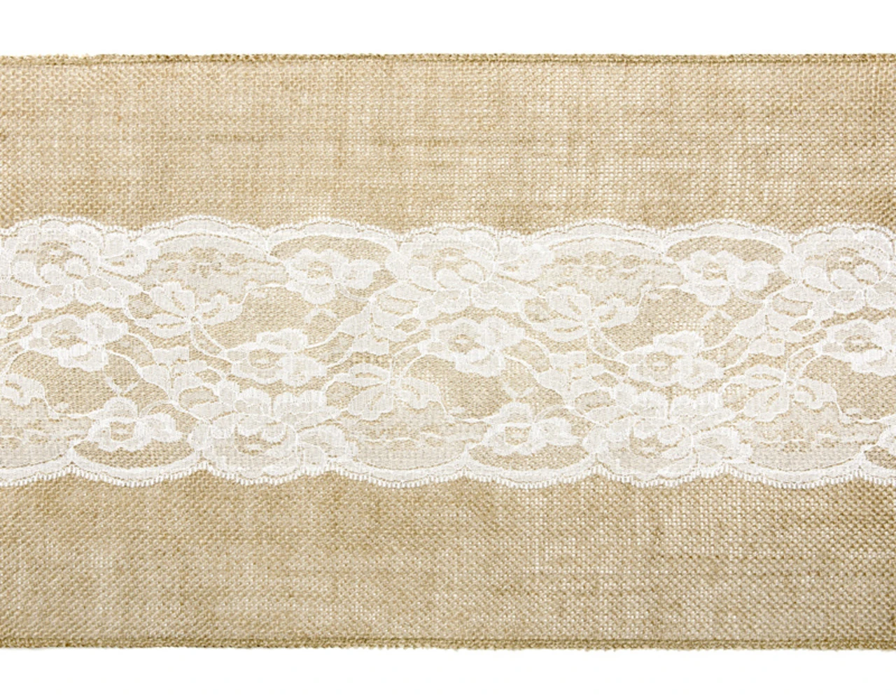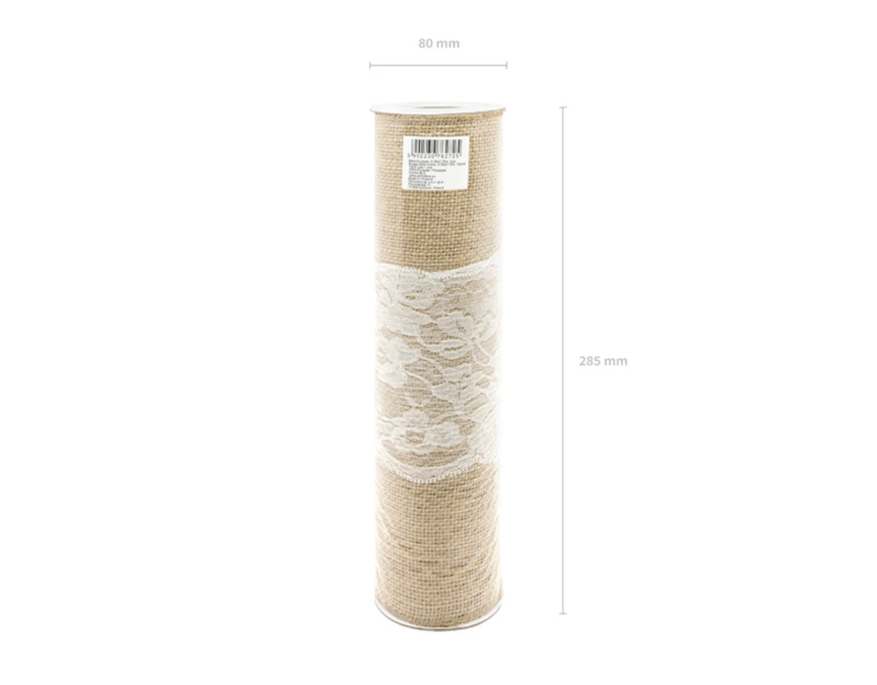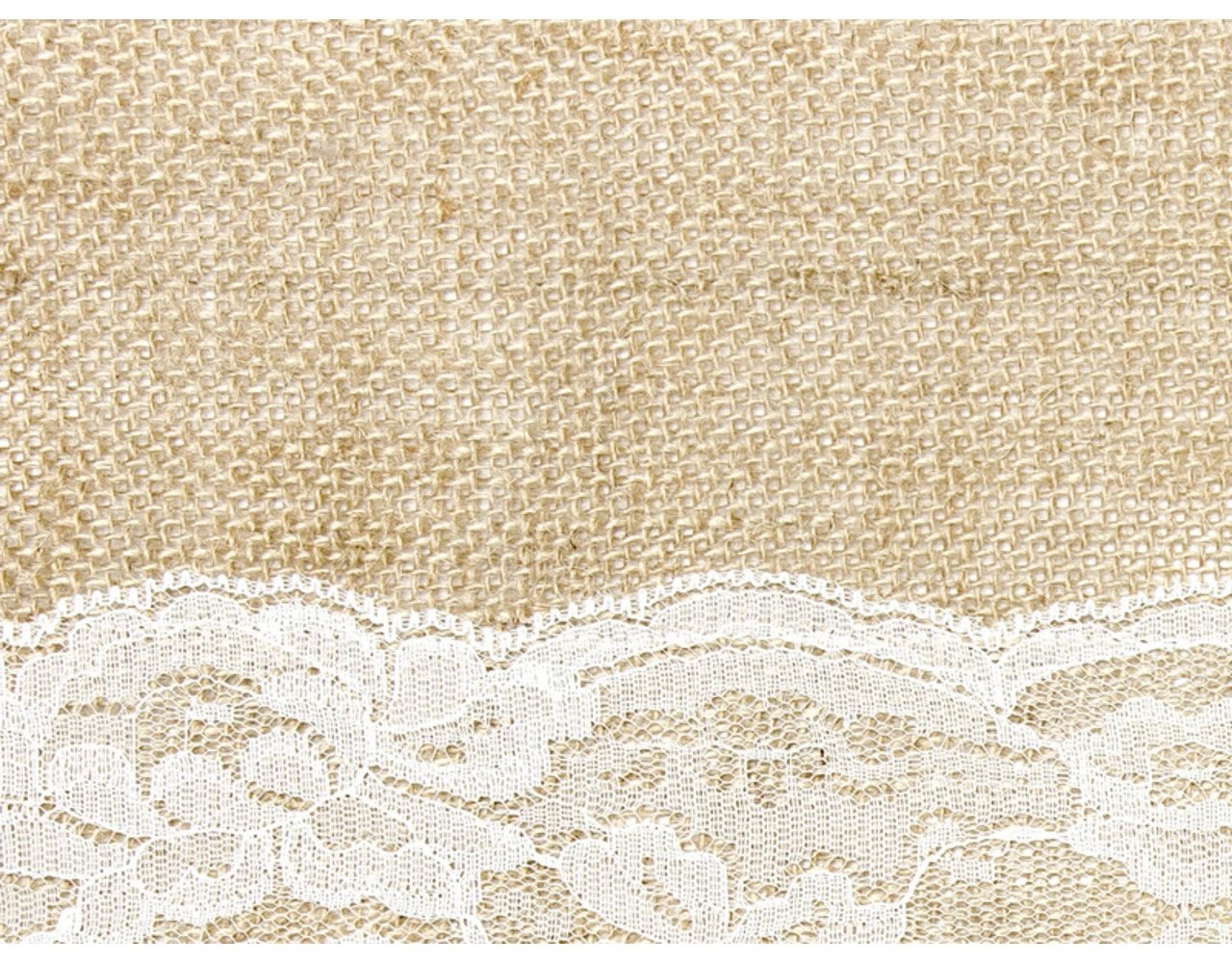 Jute tafelloper met kant, breedte ca. 28 cm, lengte ca. 2,75 m.