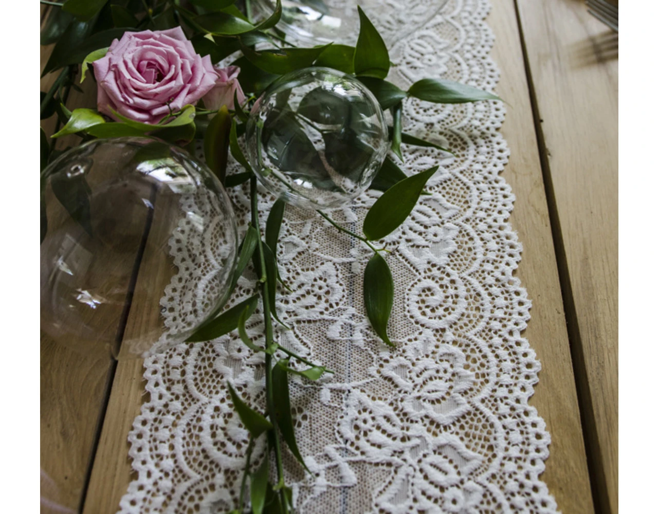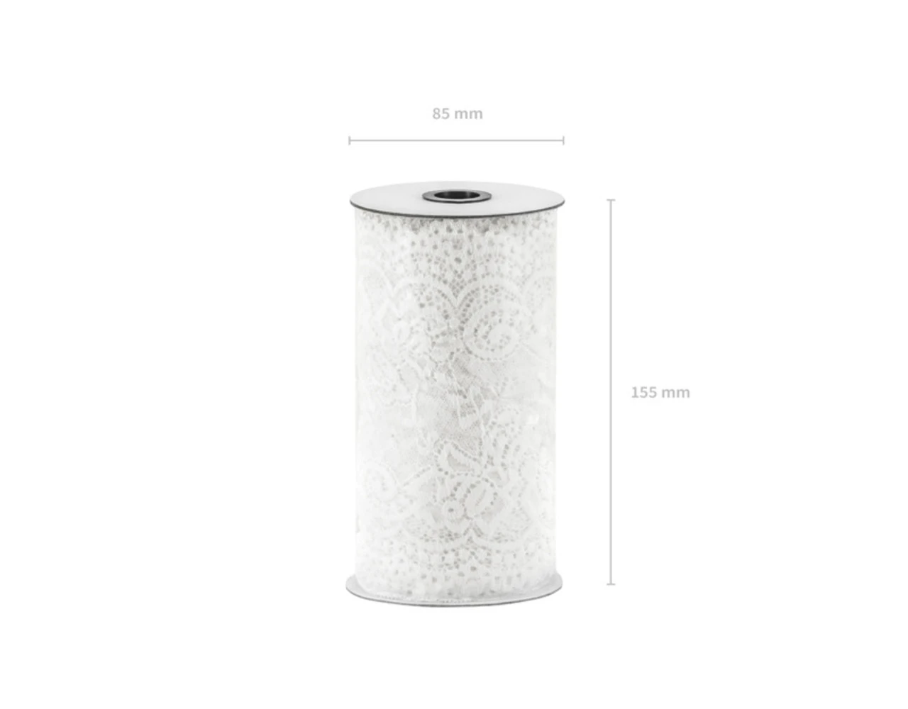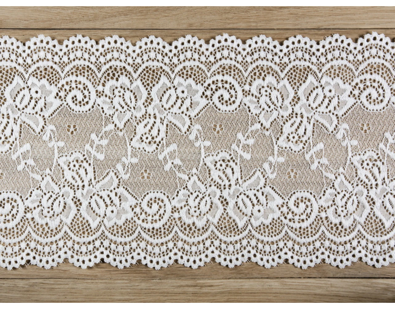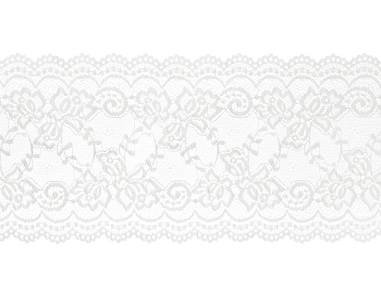 Kant, gebroken wit, breedte ca. 15 cm, lengte ca. 9 m.