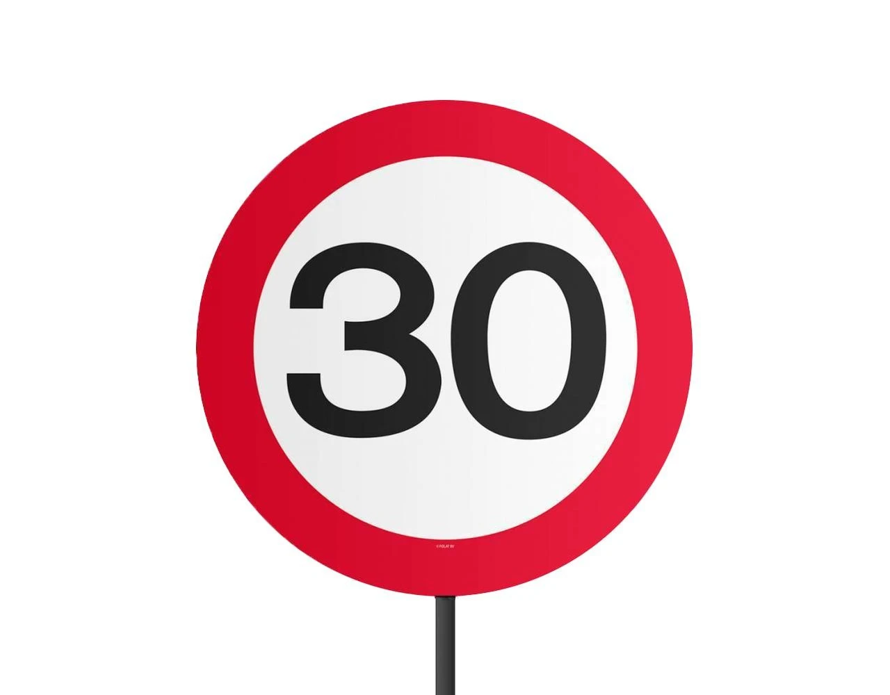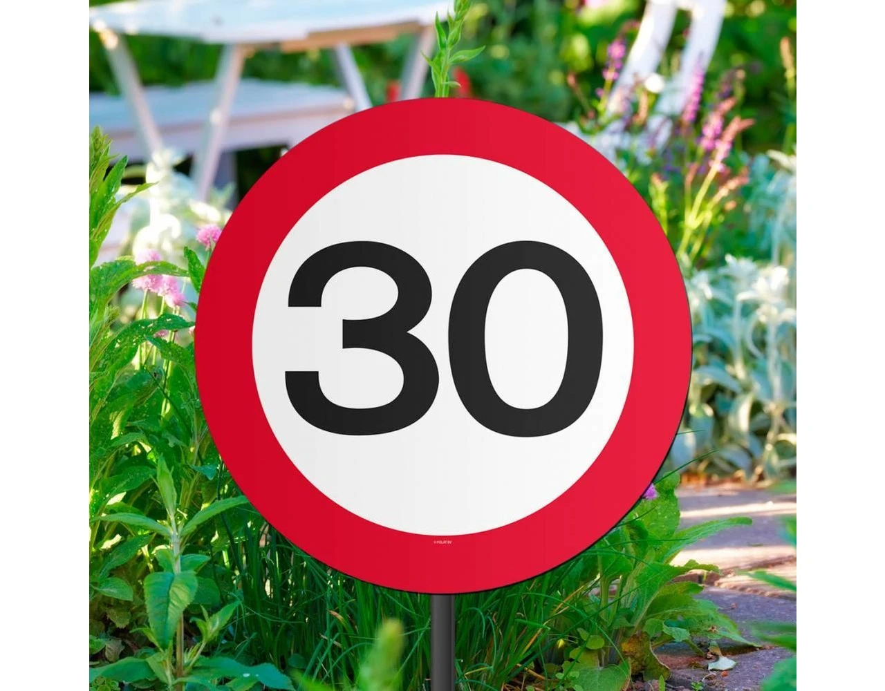 30 Jaar Verkeersbord Tuinbord. Inhoud: 1 bordje. Bijvoorbeeld te gebruiken tijdens de volgende feestgelegenheid/feestgelegenheden: Verjaardag, Jubileum. Diameter van tuinbord: 26 cm. Lengte stok: 48 cm. Het artikel is gemaakt van plastic.