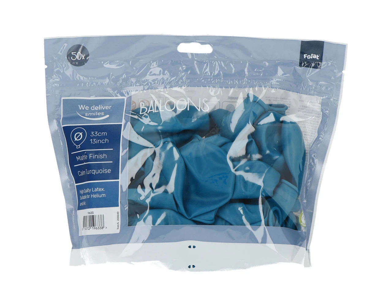 Ballonnen Calm Turquoise Mat 33cm – 50 stuks. Inhoud: 50 latex ballonnen. Kleur: Turquoise. Bijvoorbeeld te gebruiken tijdens de volgende feestgelegenheid/feestgelegenheden: Verjaardag, Kinderfeestje en Themafeest. Elke ballon is 13 inch/33 cm. Het artikel is gemaakt van latex.