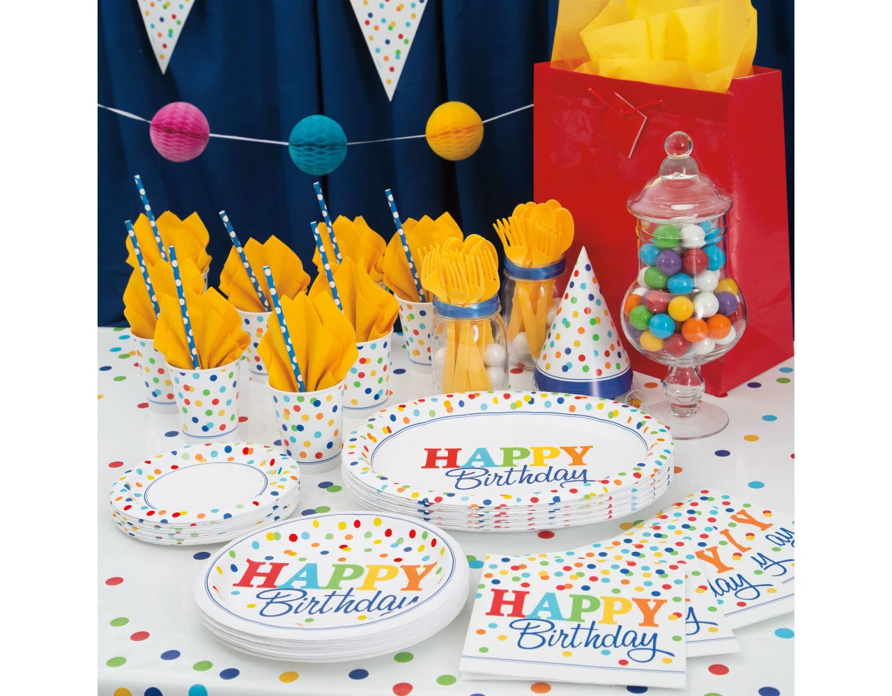Verpakkingsinhoud: Uitdeelzakjes Happy Birthday Stippen Regenboog 8st