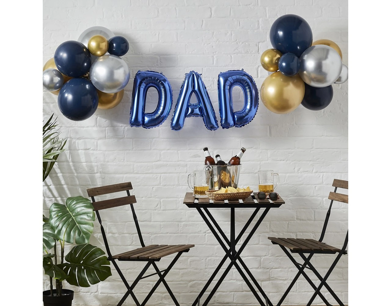 Zorg ervoor dat alle aandacht op vader is deze Vaderdag met onze fantastische ballonslingers, met folieletterballonnen die ‘papa’ spellen, en 24 gouden, marineblauwe en zilveren chromen ballonnen in verschillende maten.