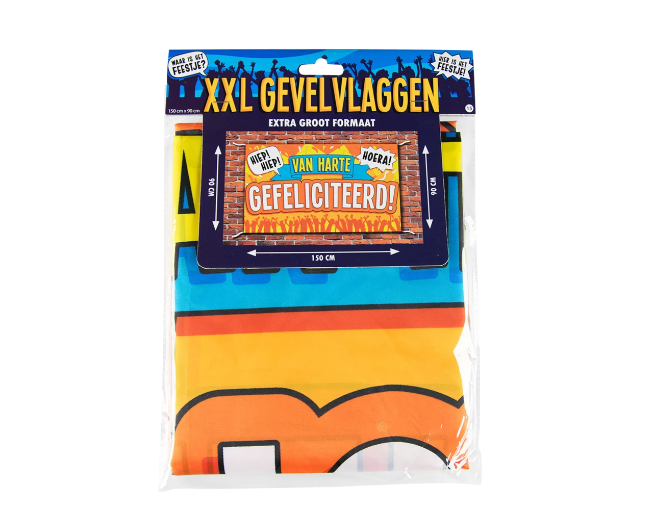 Verpakkingsinhoud: Verjaardag Gevelvlag Van Harte Gefeliciteerd 1,5m