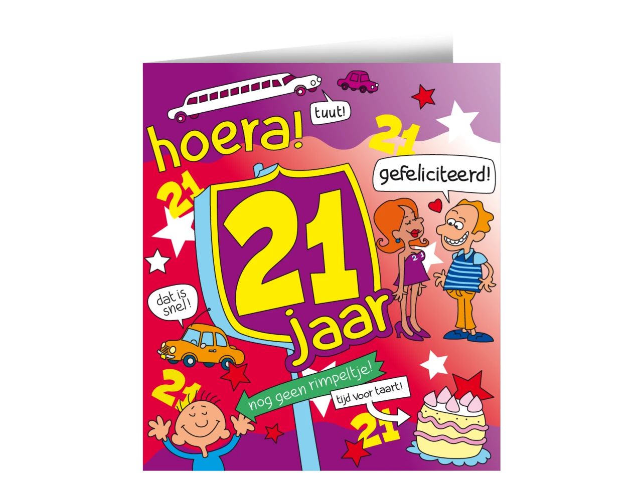 Verpakkingsinhoud: Verjaardagskaart 21 Jaar Cartoon 16,5cm