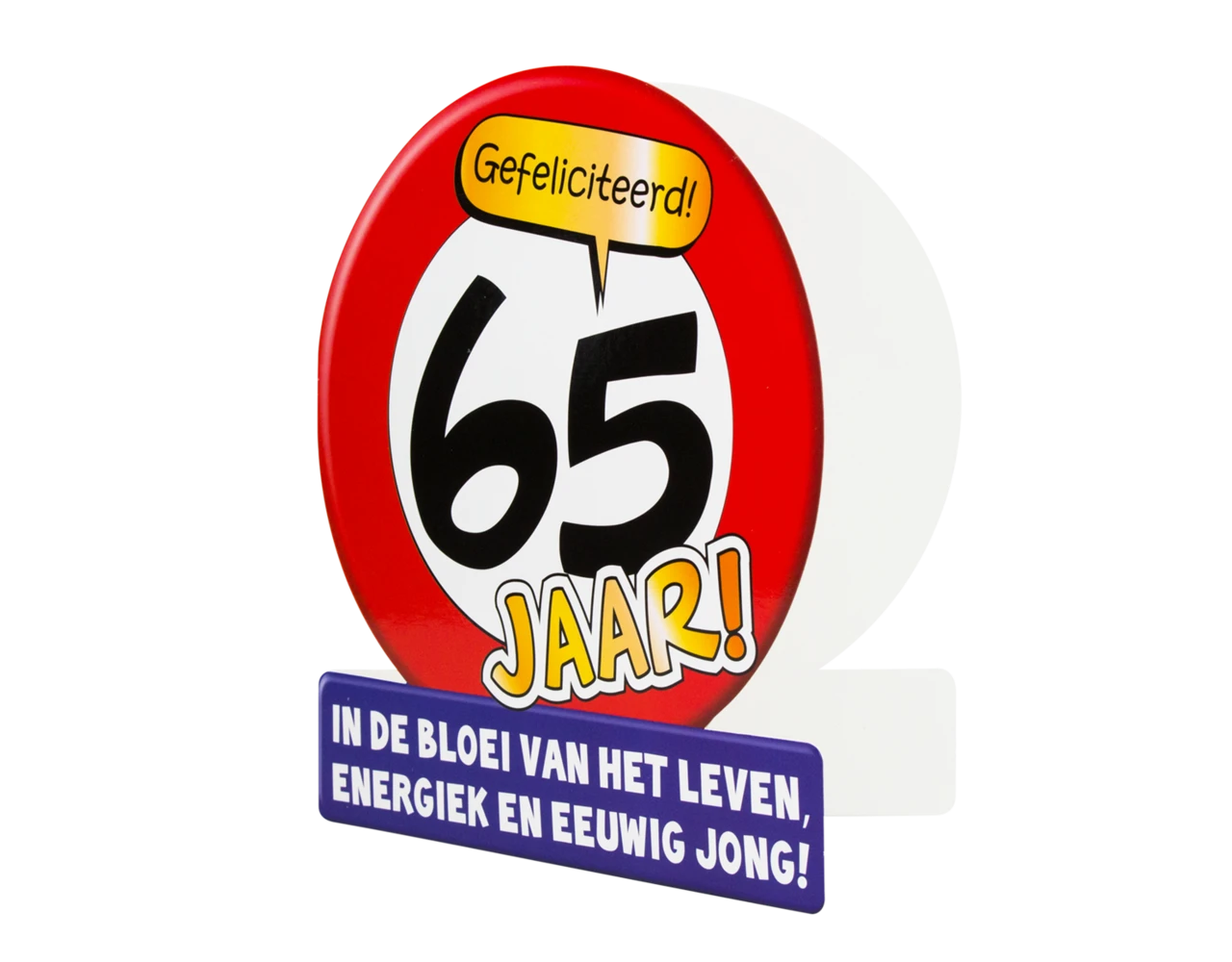 Verpakkingsinhoud: Verjaardagskaart 65 Jaar Verkeersbord 16,5cm