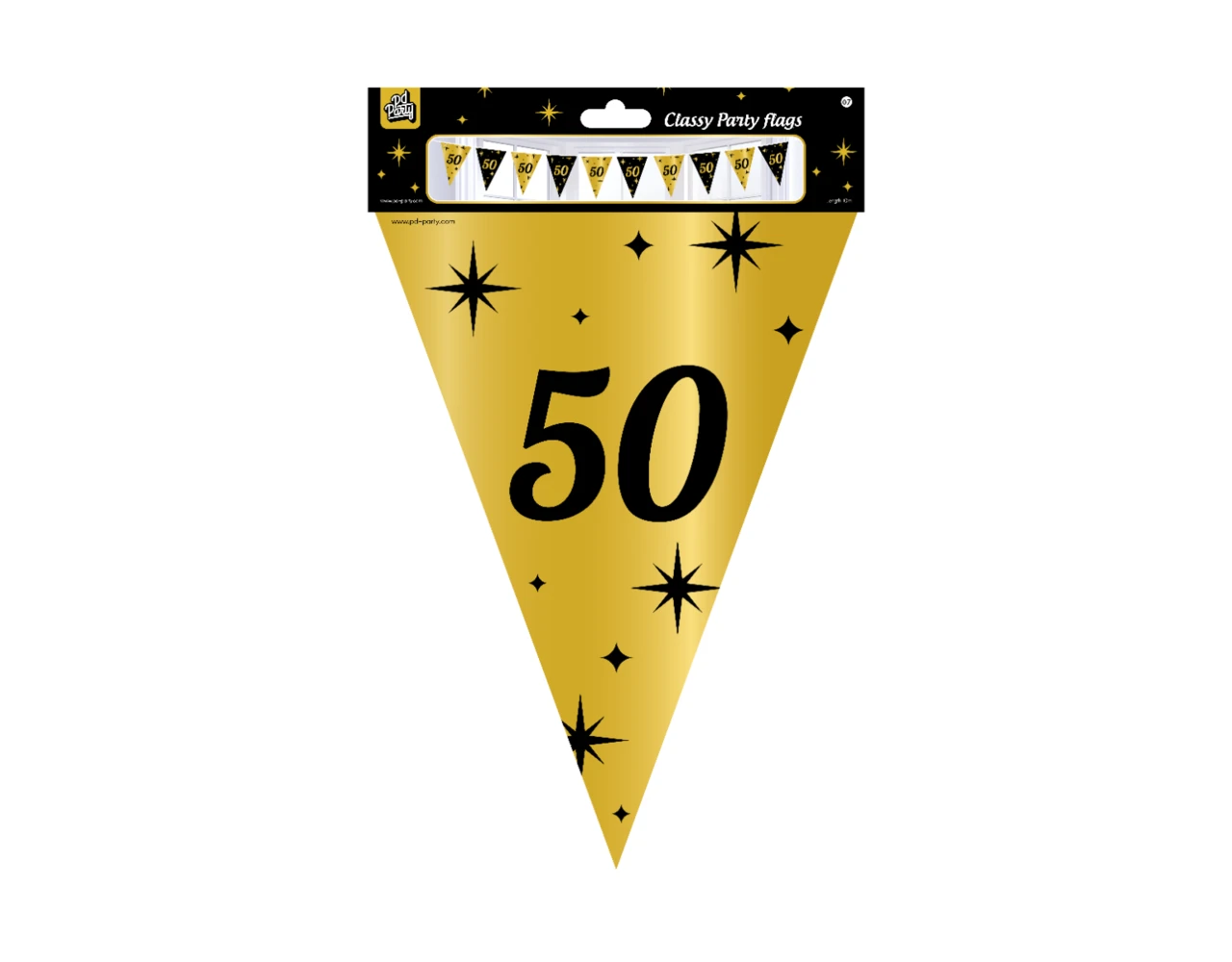 Vlaggenlijn 50 Jaar Goud Zwart 10m