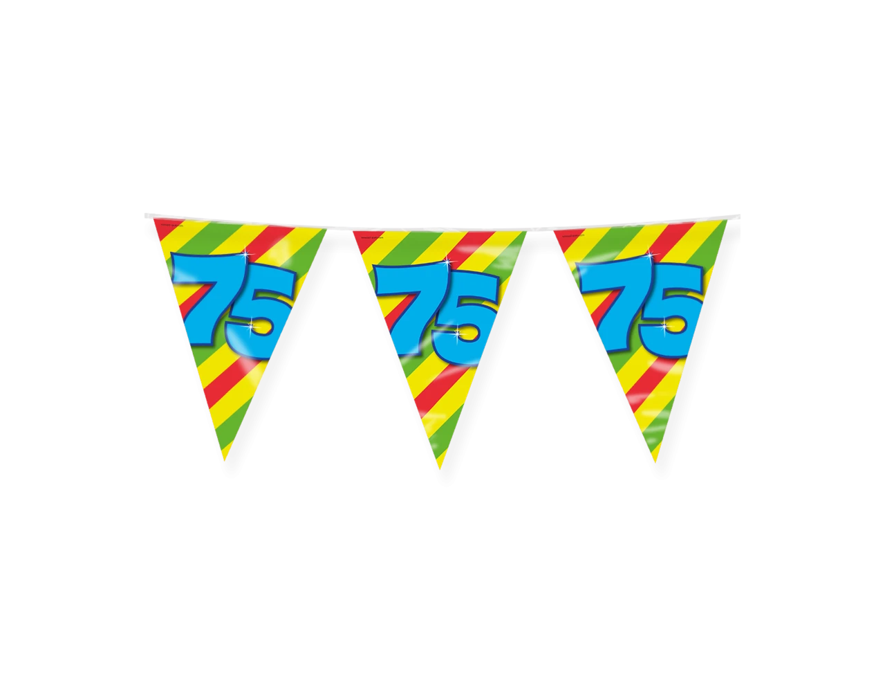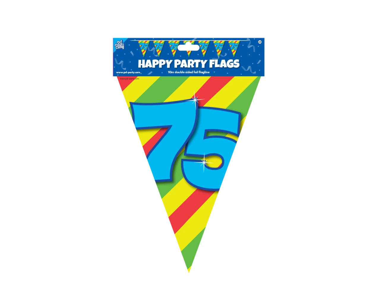 Deze Happy party flags vrolijken door de gebruikte kleuren elk feestje op!
