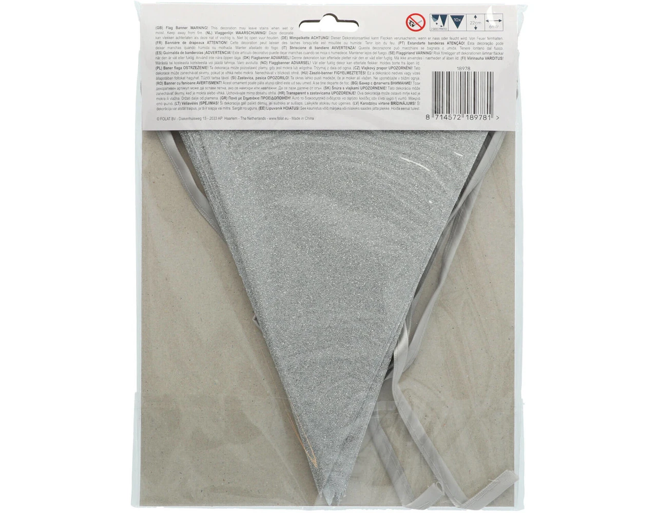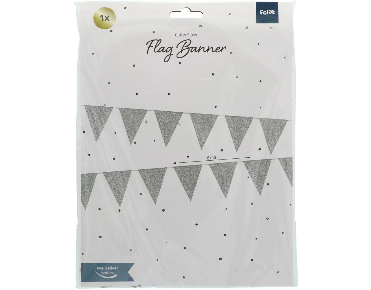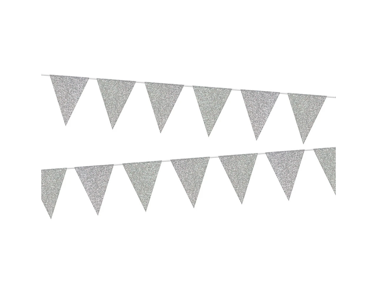 Vlaggenlijn Glamour Glitter Zilverkleurig – 6 meter. Inhoud: 1 vlaggenlijn. Kleur: Zilverkleurig. Bijvoorbeeld te gebruiken tijdens de volgende feestgelegenheid/feestgelegenheden: Verjaardag en Jubileum. Deze slinger is 6 meter lang met 10 vlaggetjes van 17×22 cm. Dubbelzijdig bedrukt, één kant met glitter. Het artikel is gemaakt van papier.