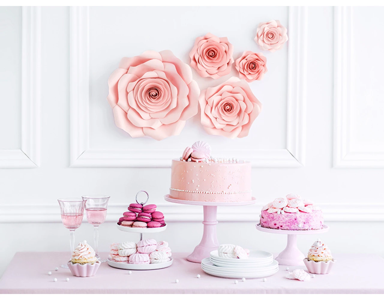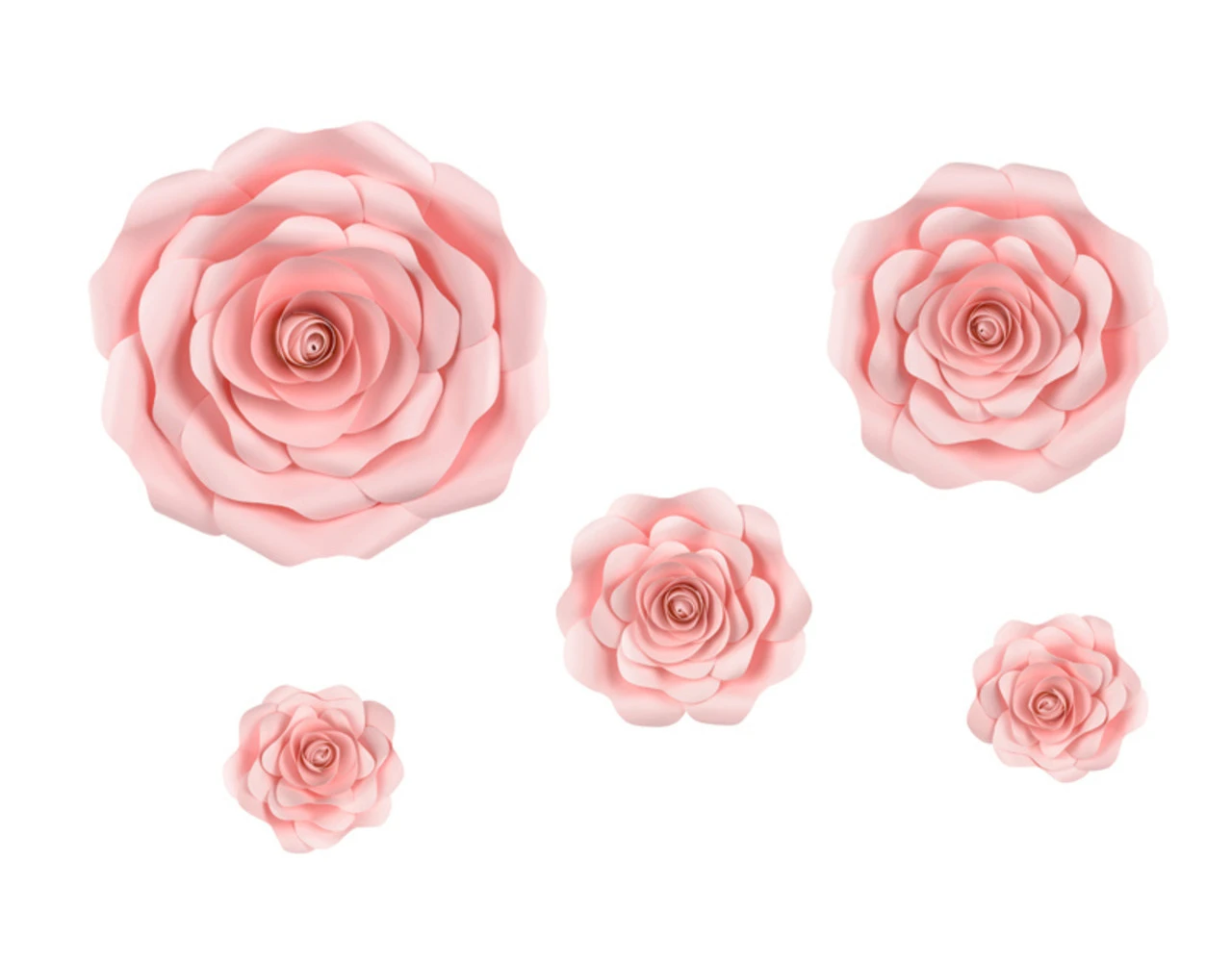 Papieren bloemen achtergrond in roze tinten, 5 stuks, diameter ca. 30, 20, 15, 10, 10 cm.