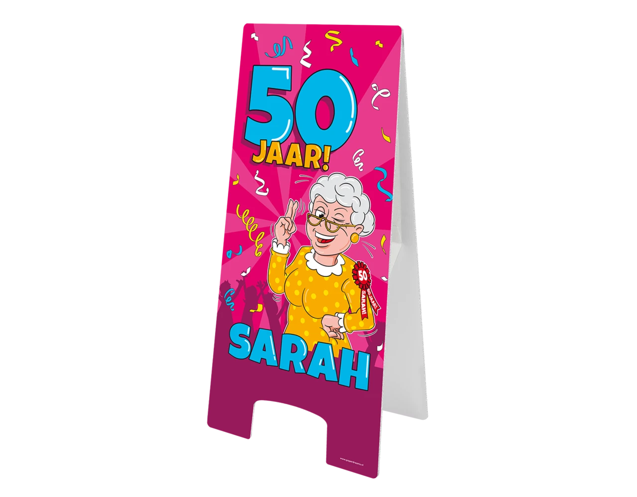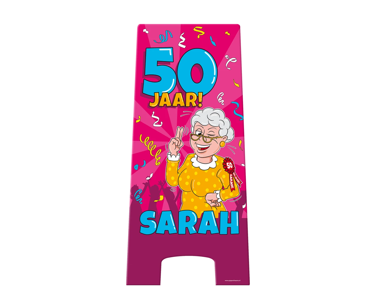 Met deze warning sign of ‘pas op’ bord voor het huis of voor een feestzaal kan iedereen direct zien dat er wat te vieren valt!