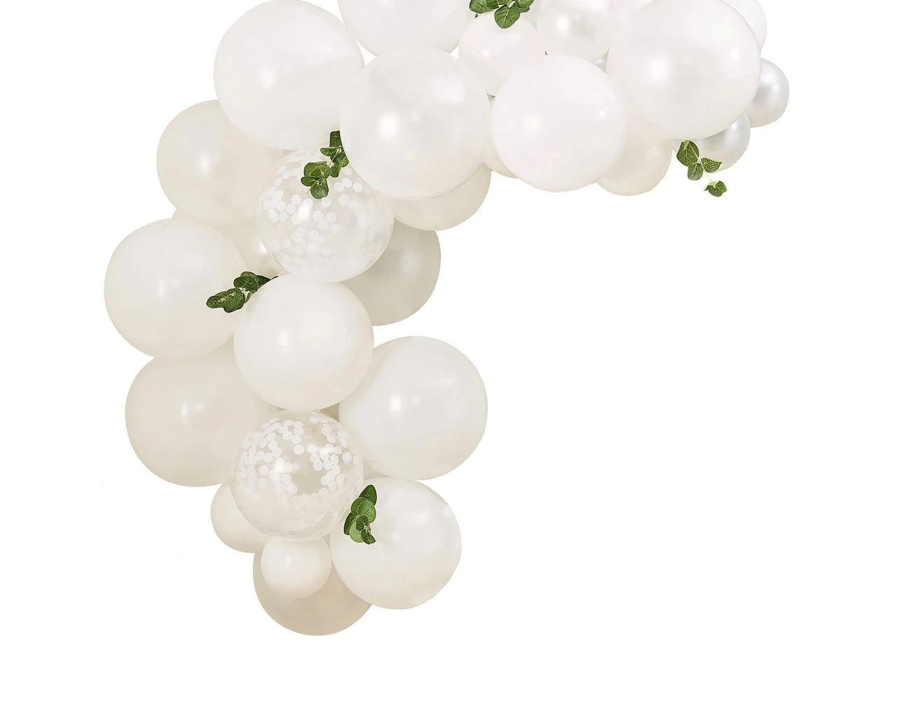 Maak een statement met deze ballonboog voor babyshowers, compleet met eucalyptusbladeren. Elke ballonboogset voor een babyshower bevat 45 ballonnen, 6 takjes eucalyptusblad en 3 m ballontape.