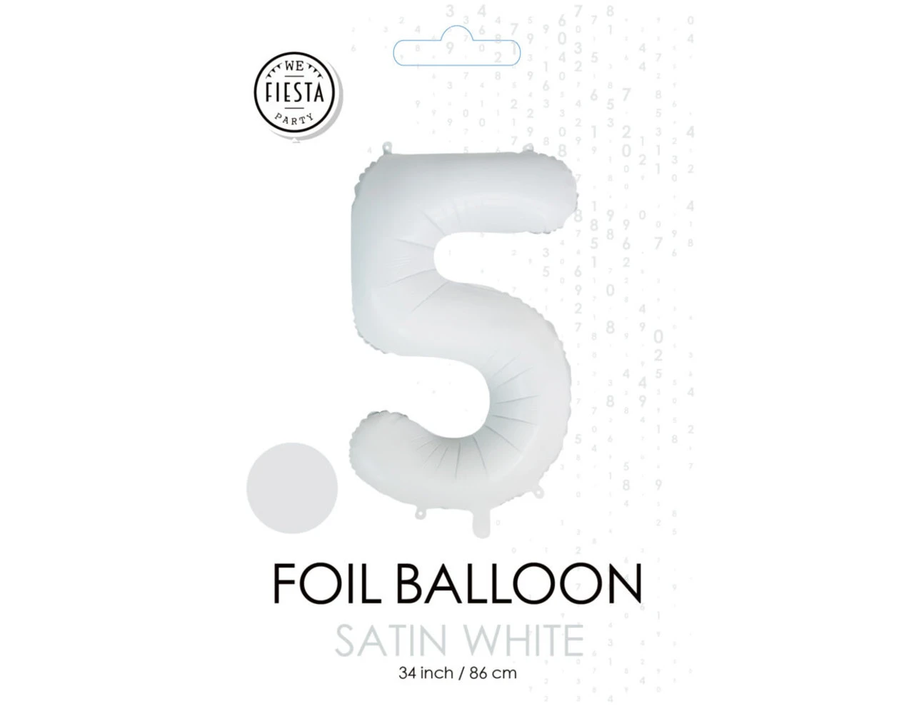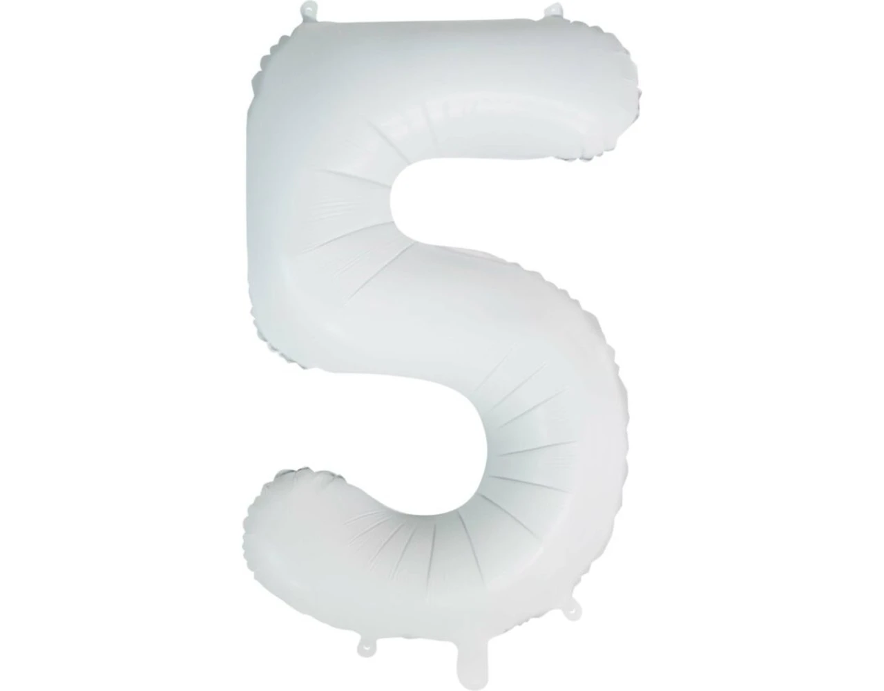 Witte Cijfer Ballon 5 Jaar Glans 86cm