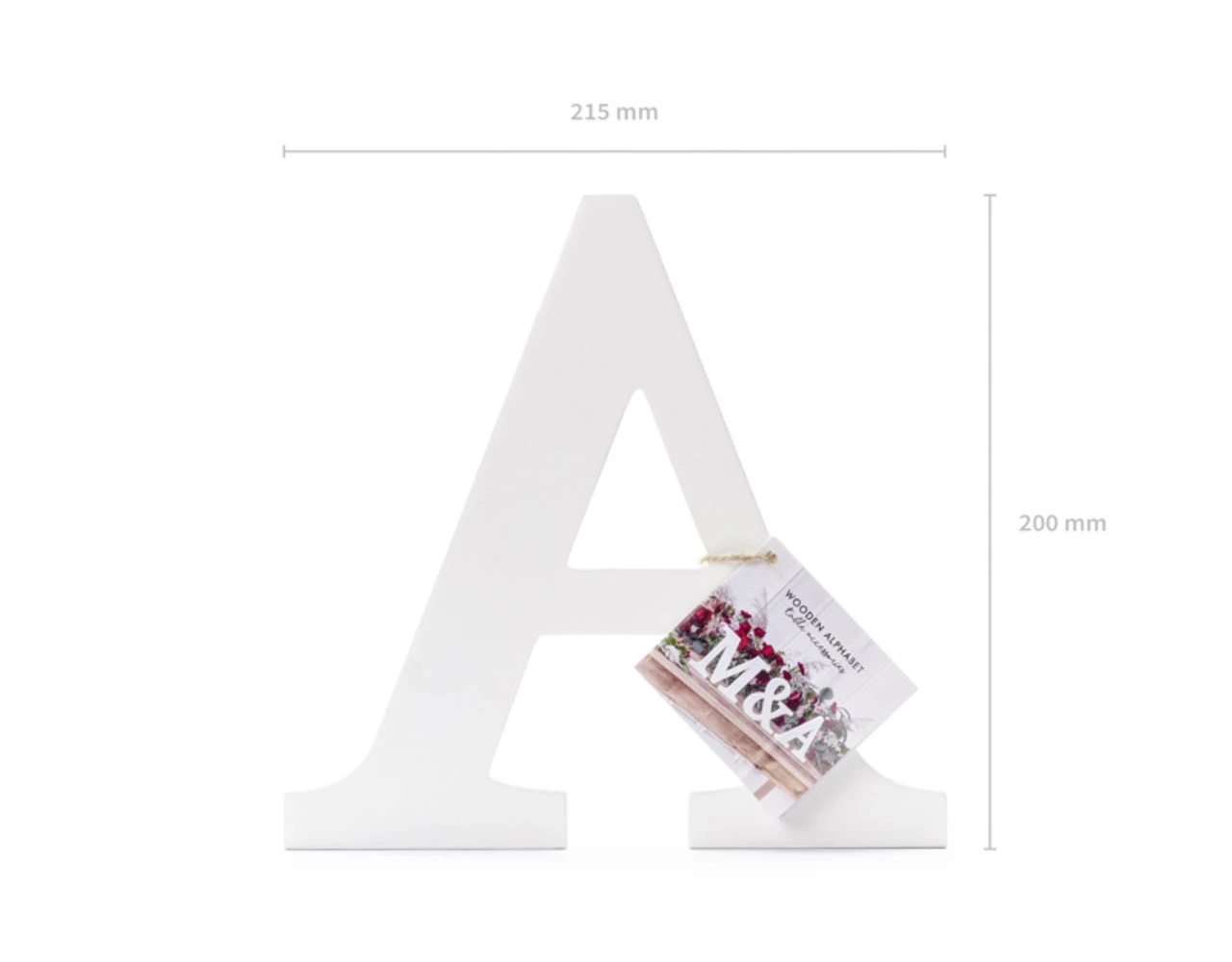 Letter A van hout in witte kleur, breedte ca. 21,5 cm, hoogte ca. 20 cm