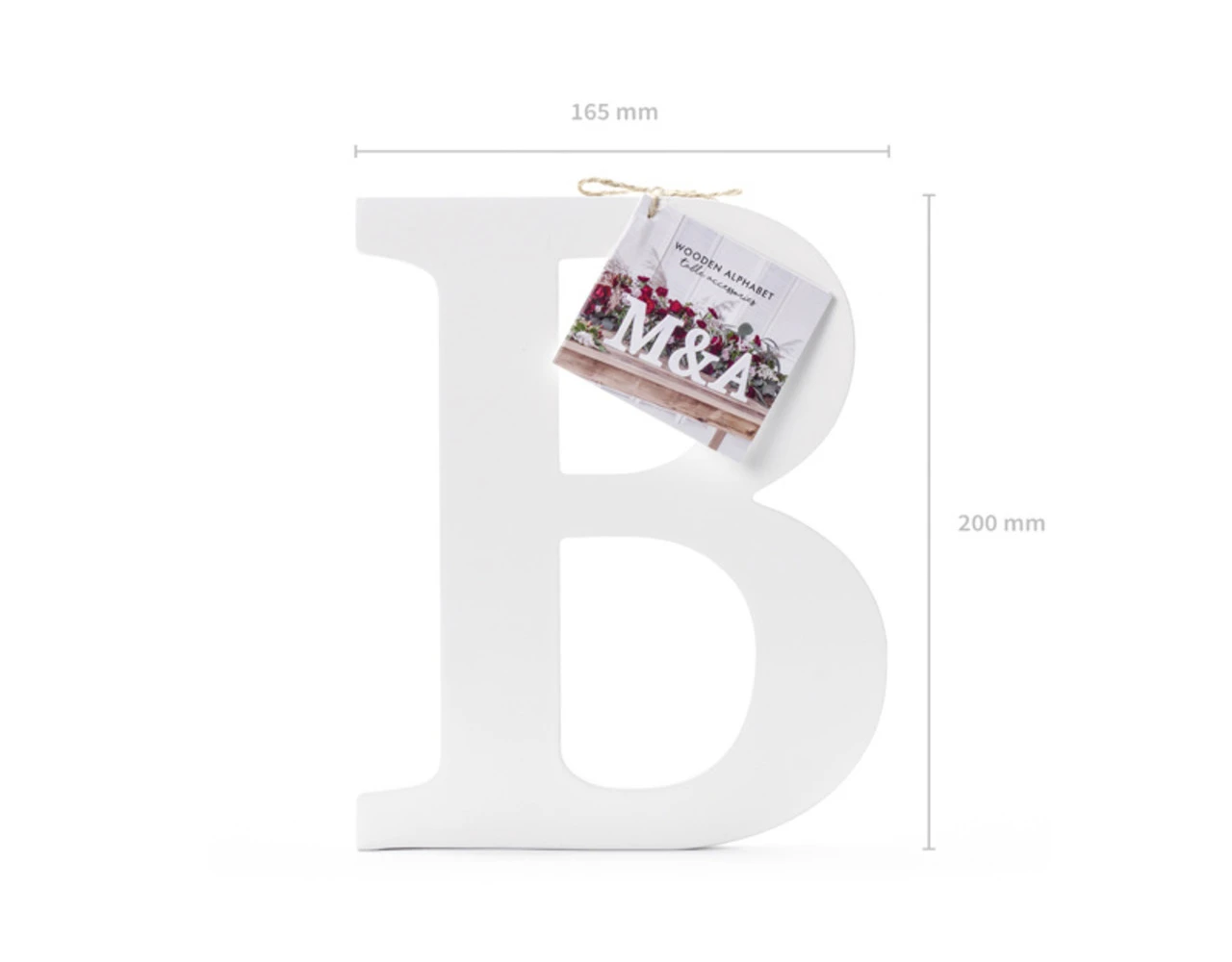 Letter B van hout in witte kleur, breedte ca. 16,5 cm, hoogte ca. 20 cm