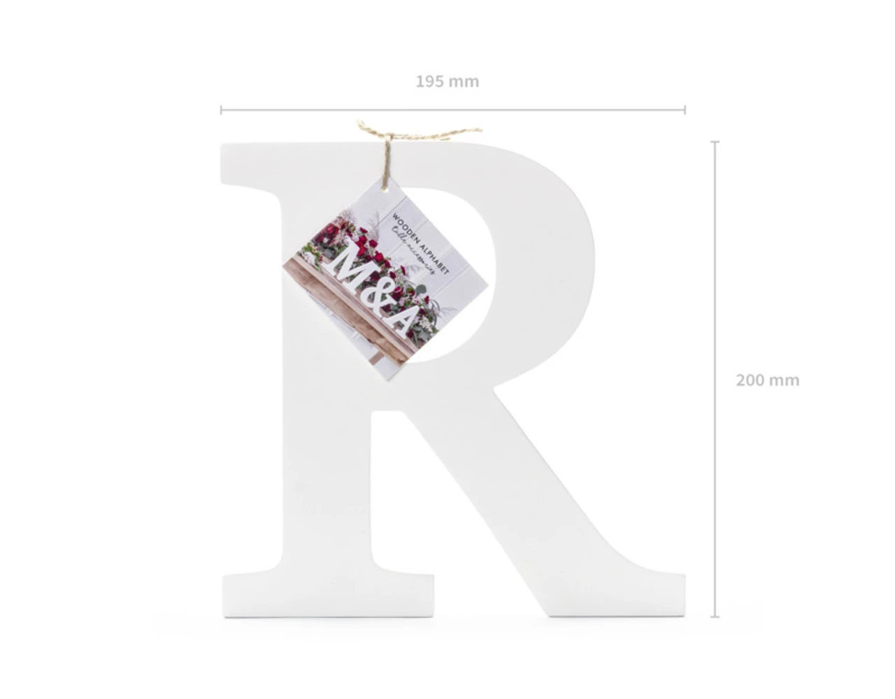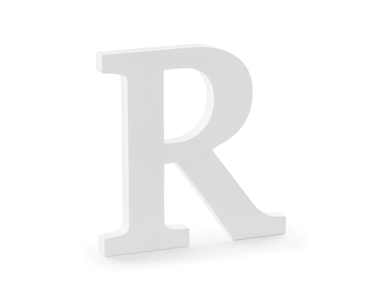 Letter R van hout in witte kleur, breedte ca. 19,5 cm, hoogte ca. 20 cm