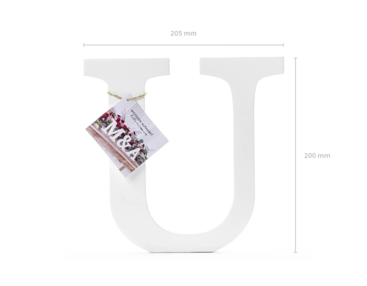 Letter U van hout in witte kleur, breedte ca. 20,5 cm, hoogte ca. 20 cm