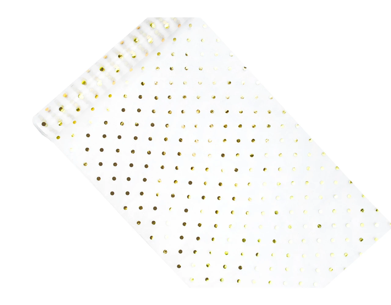 Verpakkingsinhoud: Witte Organza Stof Gouden Stippen 36cm 9m