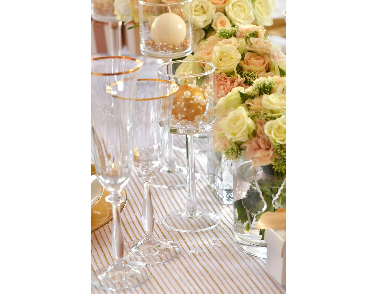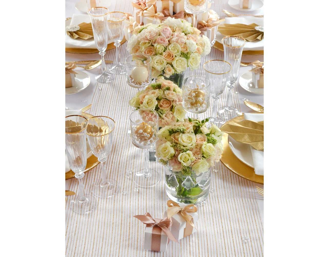 Verpakkingsinhoud: Witte Organza Stof Gouden Strepen 48cm 9m