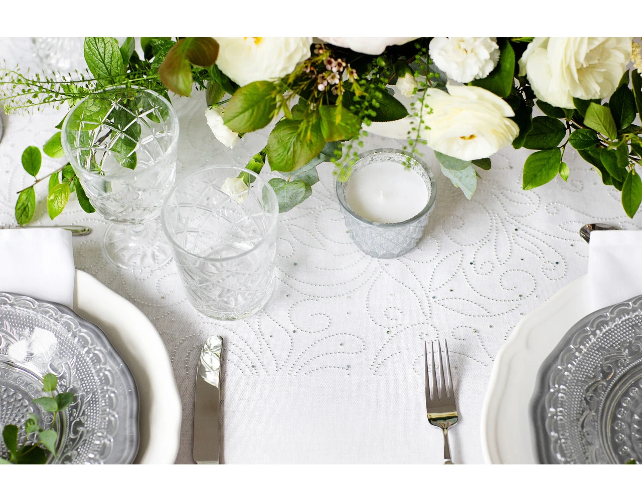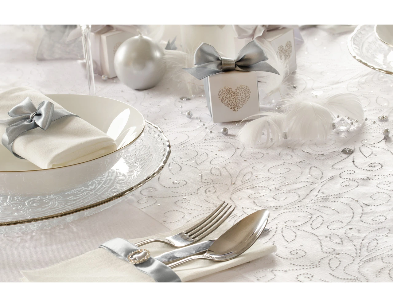 Inhoud: Printed Organza, wit met eenzijdige parel print, grootte 0.48×9 meter.