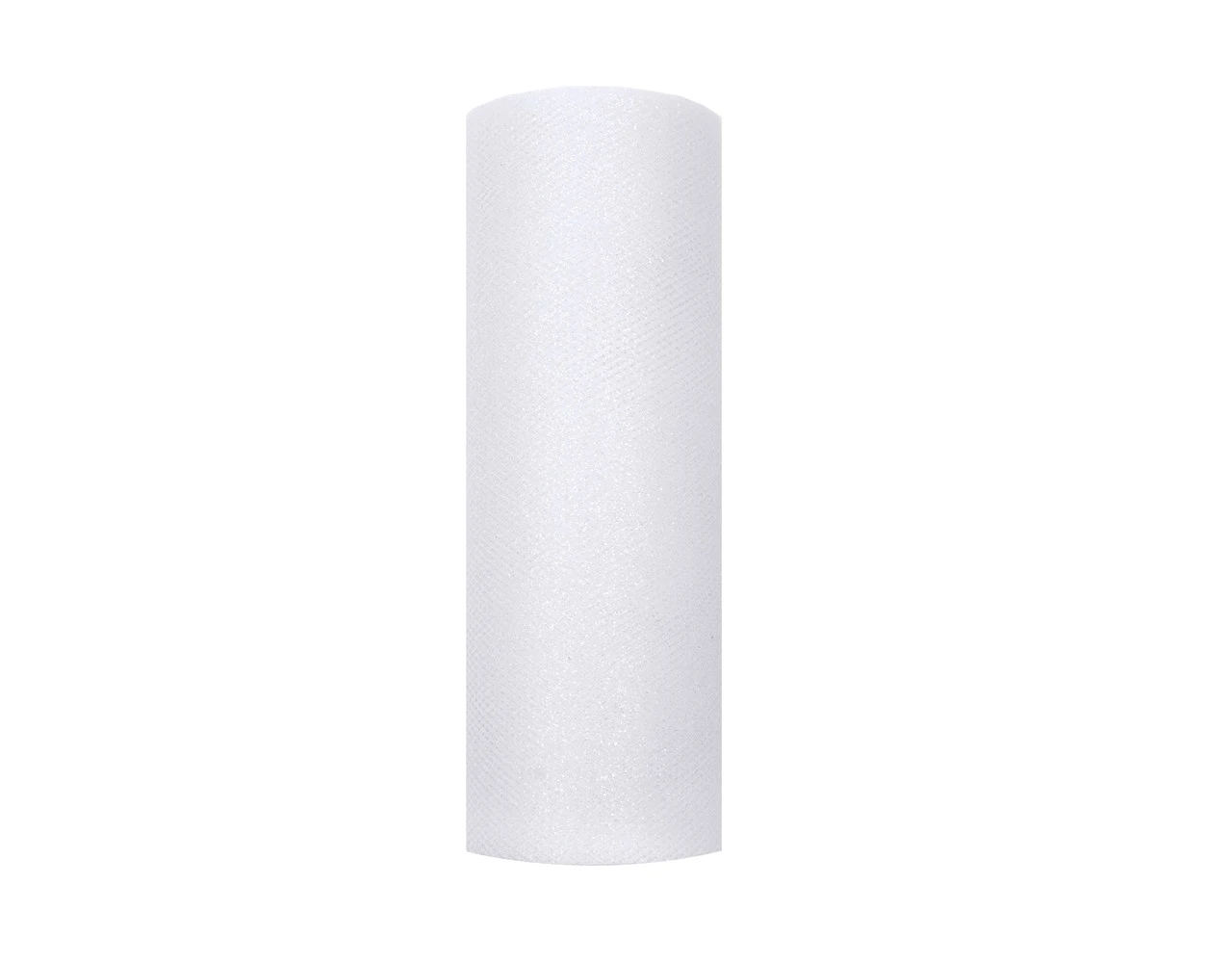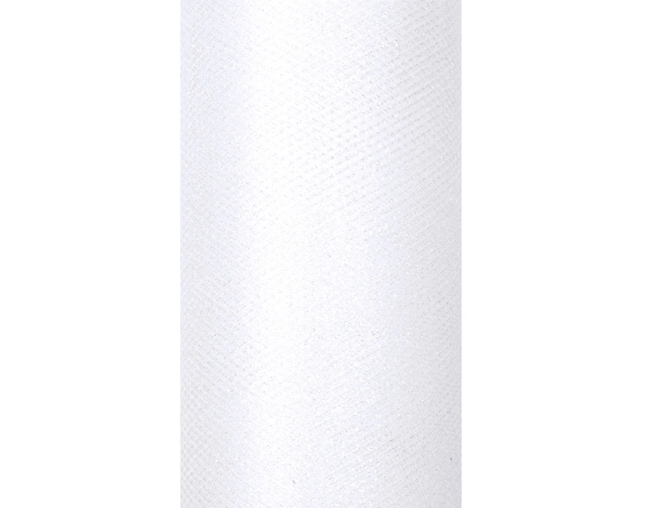 Verpakkingsinhoud: Witte Tule Rol Glitter 15cm 9m