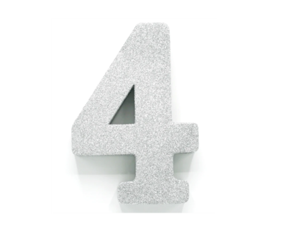 Verpakkingsinhoud: Zilver Tafeldecoratie Cijfer 4 Glitter 20,5cm