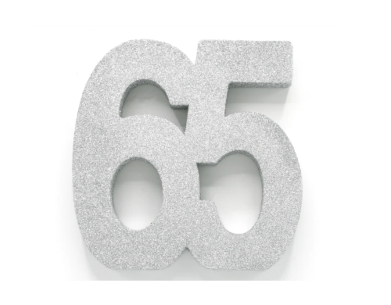 Verpakkingsinhoud: Zilver Tafeldecoratie Cijfer 65 Glitter 20,5cm