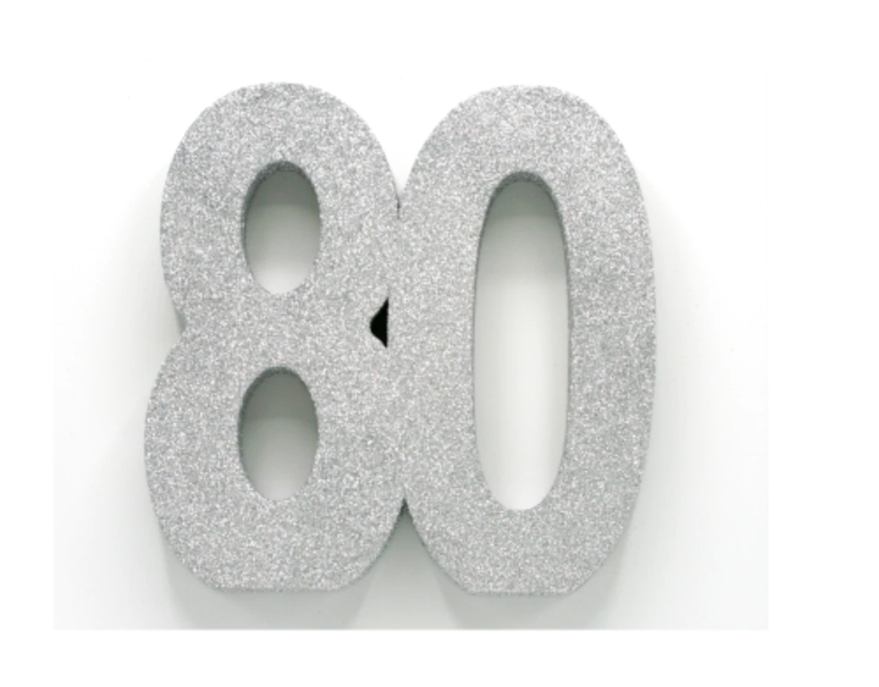 Verpakkingsinhoud: Zilver Tafeldecoratie Cijfer 80 Glitter 20,5cm