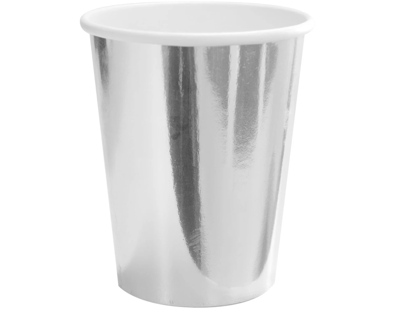 Zilverkleurige Metallic Bekers 250 ml – 8 stuks. Inhoud: 8 bekers. Kleur: Zilverkleurig. Bijvoorbeeld te gebruiken tijdens de volgende feestgelegenheid/feestgelegenheden: Verjaardag, Kinderfeestje, Themafeest. Een beker heeft een inhoud van 250 ml. Het artikel is gemaakt van papier.