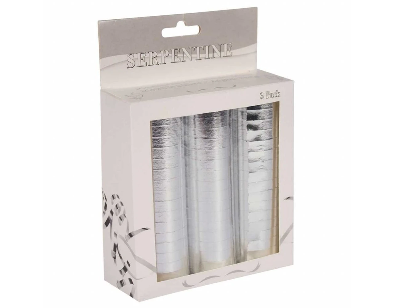 Serpentines metallic zilver. Inhoud: 3 rollen serpentines. Bijvoorbeeld te gebruiken tijdens de volgende feestgelegenheid/feestgelegenheden: Jubileum, Verjaardag. Elke rol serpentine heeft 18 ringen. Het artikel is gemaakt van papier.